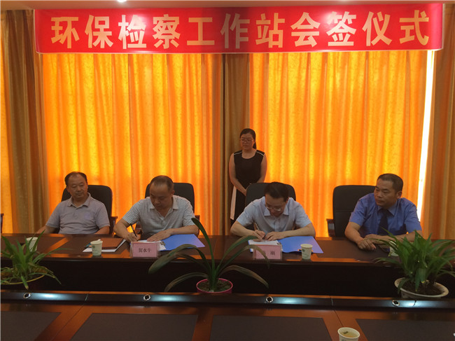 两家单位进行了会签仪式,随后参会人员畅所欲言,言辞中均表露出希望以此为平台,构建“两法衔接”的有效桥梁。会后,县检察院陈刚检察长参观了环保检察工作站。