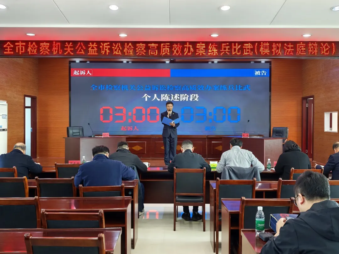 本次业务竞赛结合公益诉讼工作实际和发展需求,设置案件审查与文书制作、高质效典型案例汇报、模拟法庭辩论三个部分,对参赛选手的专业知识储备、综合业务能力和语言表达能力进行全面考察。