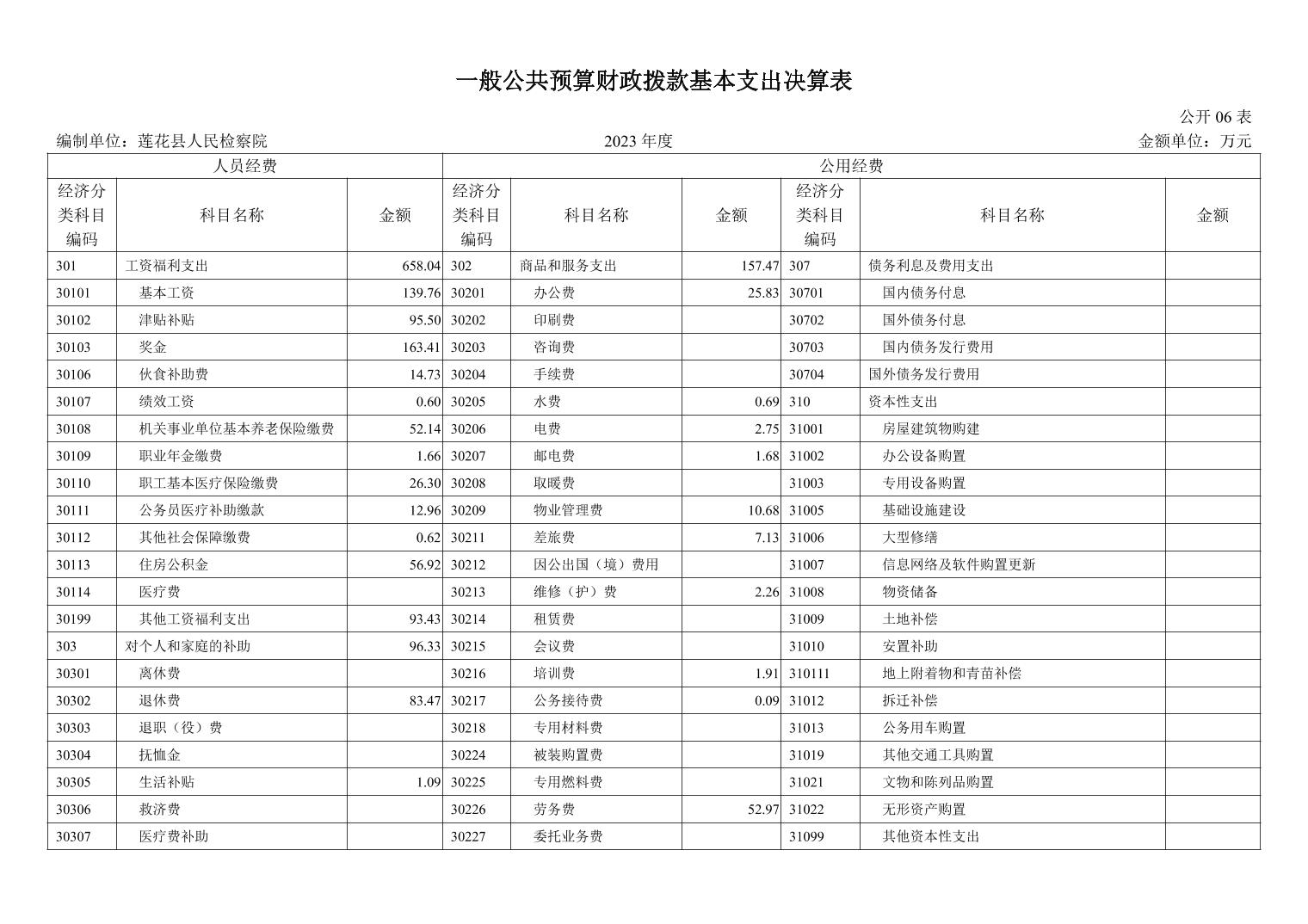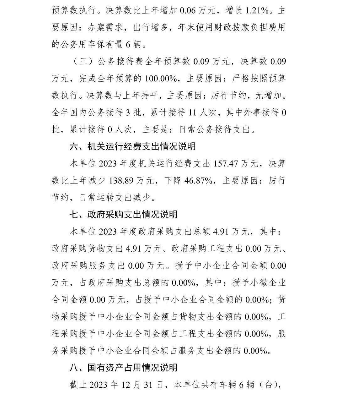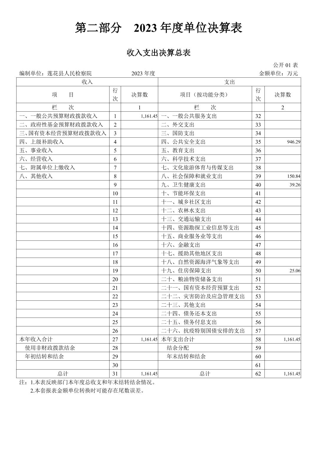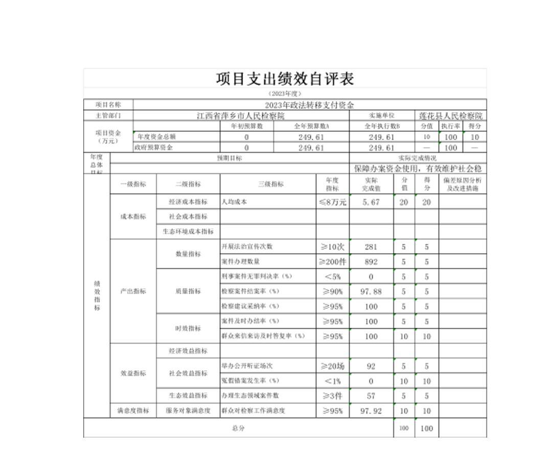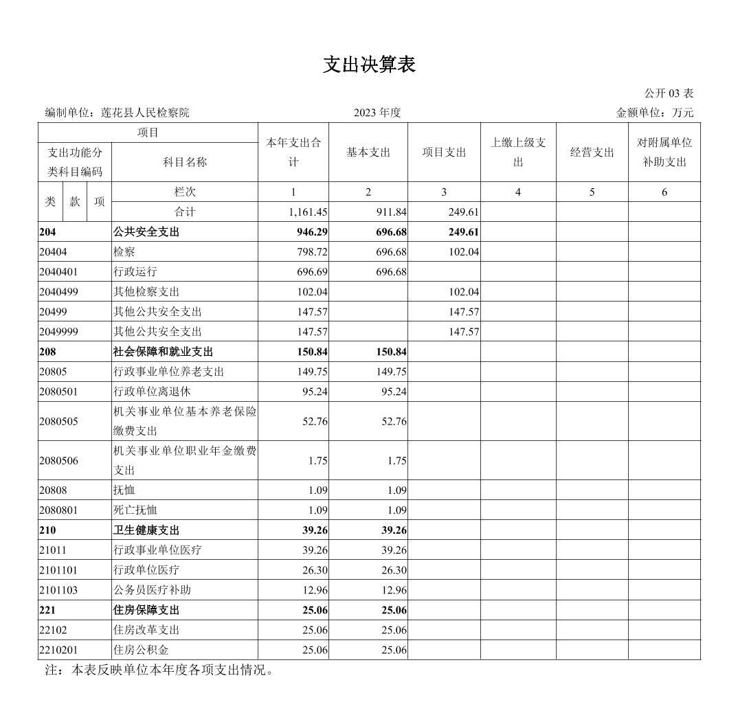 莲花县人民检察院2023年度单位决算